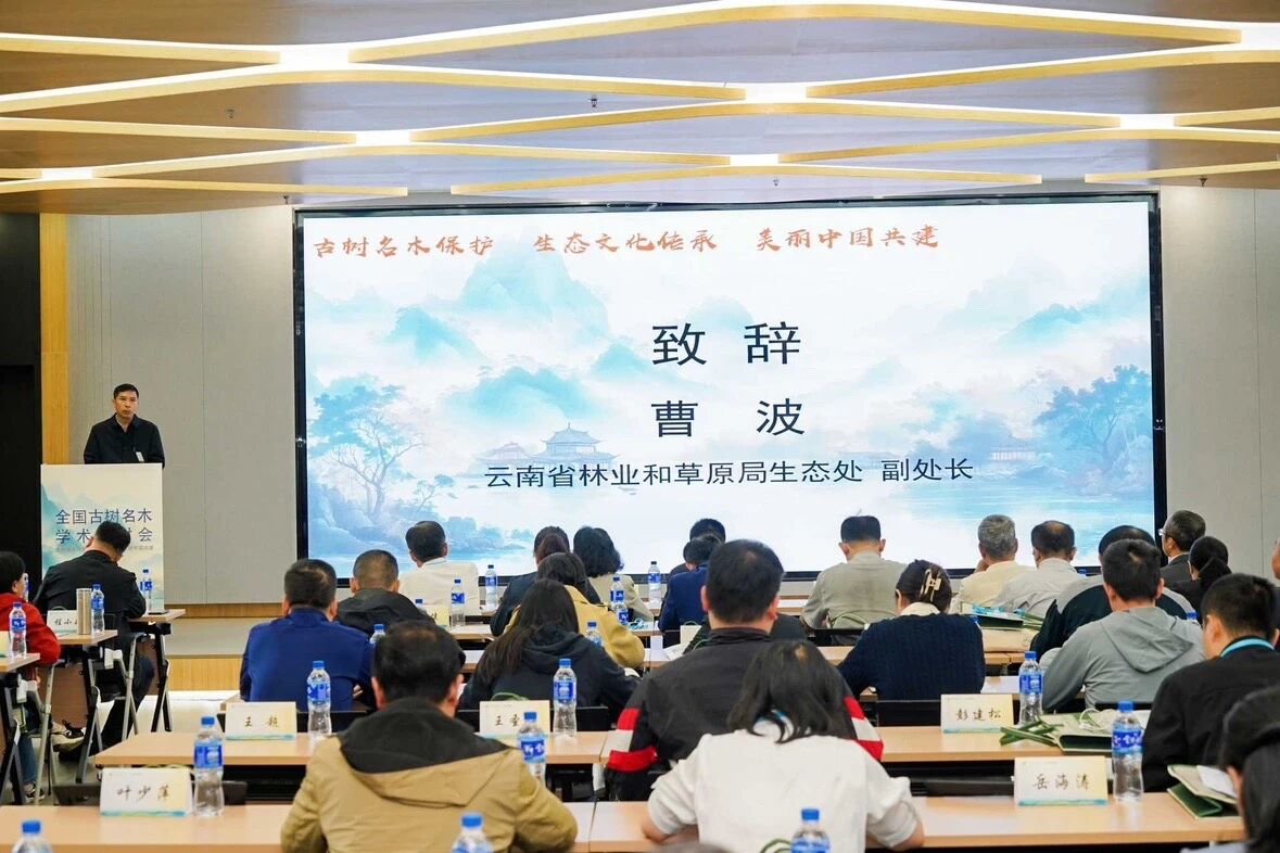 曹波代表省林草局肯定本次研讨会的积极意义,表示此次会议汇聚了全国顶尖的专家学者,搭建了一个分享最新研究成果、交流先进保护技术的重要平台,组织了一场共同探讨、凝聚共识、推动古树名木保护事业可持续发展的盛会。诚挚希望与会专家、学者、嘉宾通过深入交流、集思广益,为全国古树名木的保护工作提供宝贵的意见建议。真诚期待进一步加强与各科研院所、高校及其他省区的合作,将最先进的理念和技术运用到云南的保护实践中,共同推动古树名木保护工作再上新台阶。