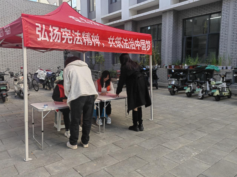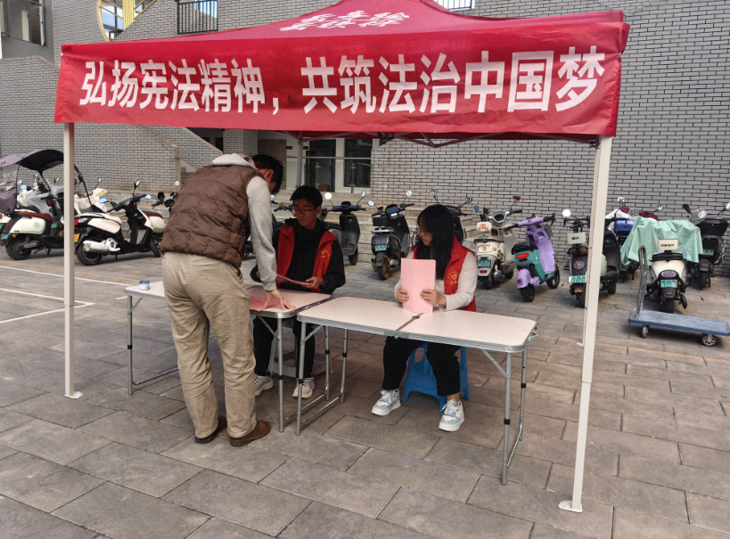 活动现场,工作人员热情地向过往师生发放精心制作的宪法宣传单,内容图文并茂、通俗易懂,涵盖宪法基本知识、与校园生活紧密相关的宪法条款解读等。同时,为师生们解答关于宪法的疑问,引导大家深入认识宪法的重要地位和作用。此次活动吸引了众多师生驻足参与,大家积极领取资料、咨询问题,现场气氛热烈。通过互动交流,师生们对宪法有了更直观、更深刻的理解,增强了法治观念和尊法学法守法用法的意识。