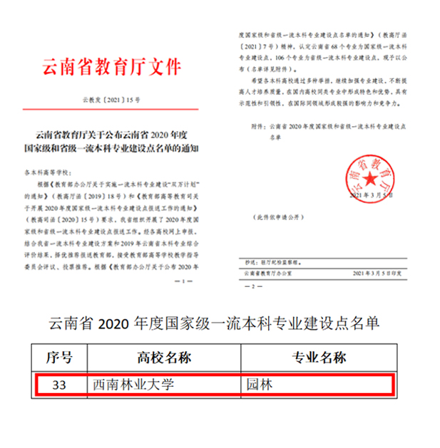近日,教育部办公厅公布了2020年度国家级一流本科专业建设点名单,公司园林专业入选国家级一流本科专业建设点。