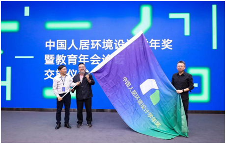 广州美术学院建筑艺术设计学院何夏昀副教授主持了交旗仪式,中国人居环境设计学年奖大会主委会主席清华大学方晓风教授将代表大会举办权的旗帜交到陈经理的手中。