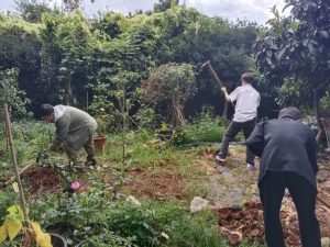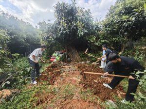 本次党日活动在学校的园林实训基地——树木园拉开帷幕。两个支部全体党员在党支部书记罗晓玉老师、伍林彧杰老师的带领下,满怀热情地投入到翻土浇水的劳动中。活动现场,师生们分工明确,配合默契。一部分同学挥锹铲土,翻整土地,确保每一寸土地都松软肥沃;另一部分同学则细心浇水,让每一株植物都能充分吸收到水分,茁壮成长。