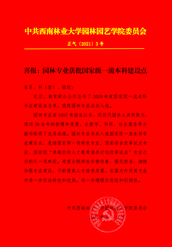 喜报:园林专业获批国家一流本科建设点