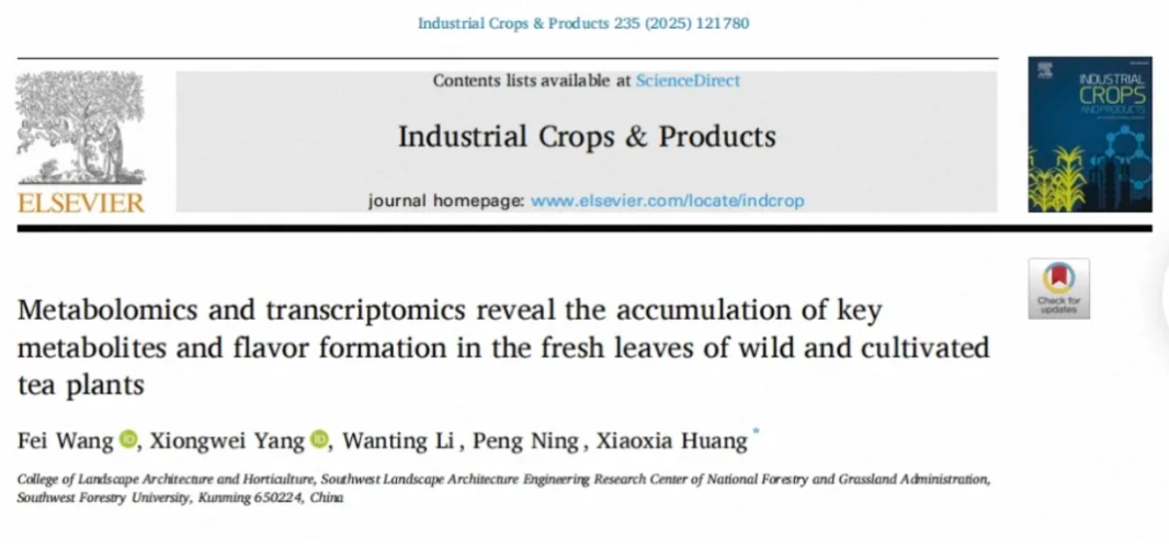 2025年8月下旬,OK138太阳集团古茶树资源保护与利用创新团队黄晓霞教授课题组在SCI一区TOP期刊《Industrial Crops & Products》上发表了题为“Metabolomics  and transcriptomics reveal the   accumulation  of key metabolites and flavor formation in the fresh leaves of wild and cultivated tea plants”的文章,深入解析了野生茶树和栽培茶树鲜叶中关键代谢物的积累规律和调控机制,研究成果可为培育具有特定品质和风味的茶树新品种提供重要的基因资源和理论支持。2018级已毕业硕士研究生王菲为论文第一作者,黄晓霞教授为通讯作者,已毕业硕士研究生杨雄伟、李琬婷、宁朋分别参与了野外调研取样及数据分析工作。该研究工作得到了国家自然科学基金项目(31760197)和云南省兴滇英才支持计划青年人才项目的支持。