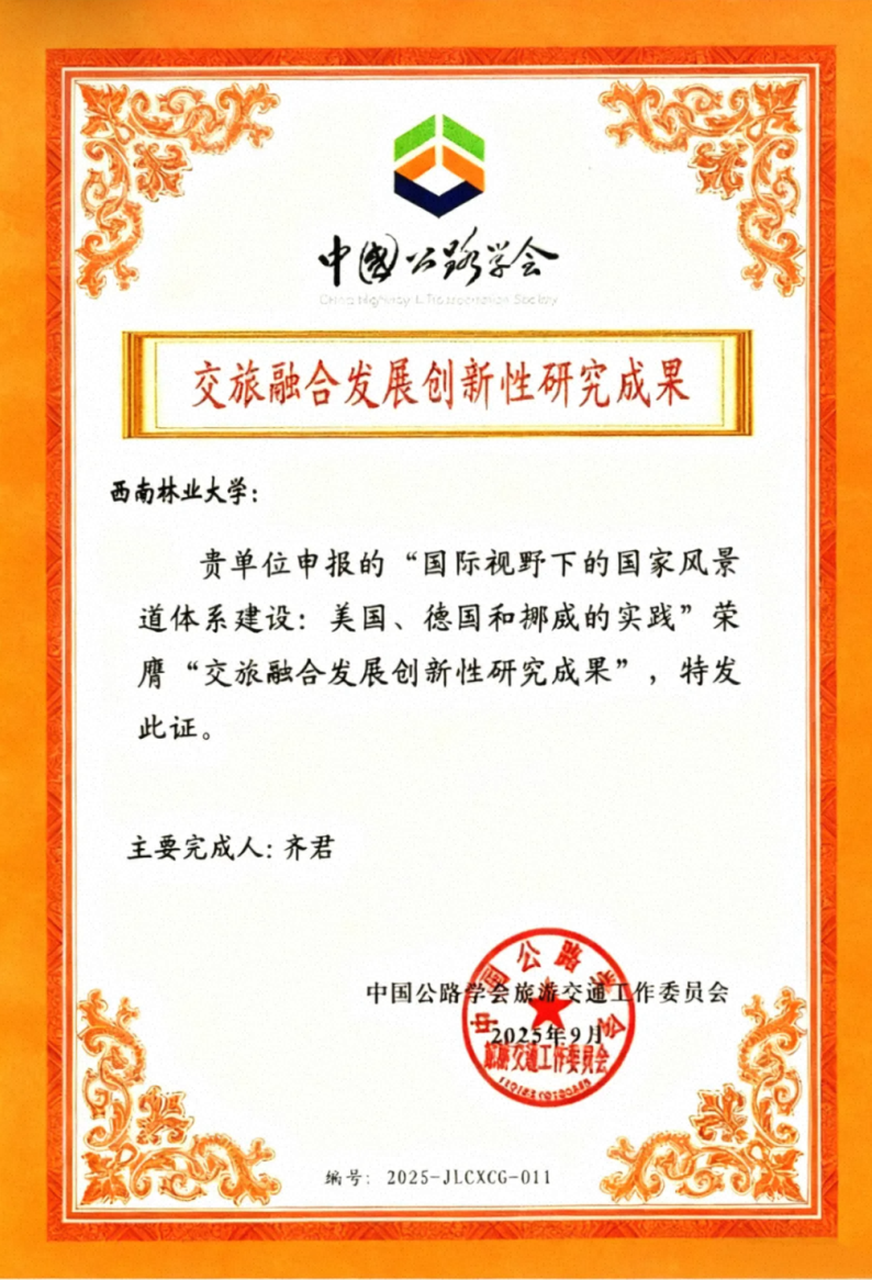 近日,第八届旅游交通大会在湖北宜昌隆重举行。大会公布了备受瞩目的交旅融合发展创新性研究成果评选结果,全国共有15项优秀成果获此殊荣。由公司OK138太阳集团齐君副教授主持完成的学术论文《国际视野下的国家风景道体系建设:美国、德国和挪威的实践》成功入选,彰显了公司在相关领域的学术影响力。