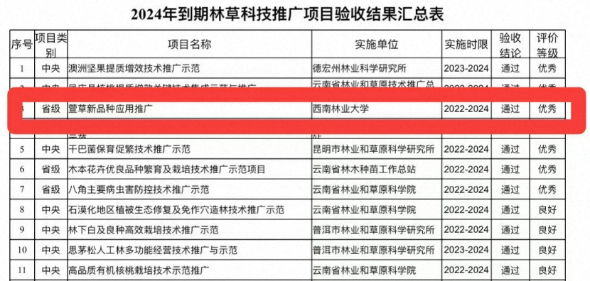 在云南省林业和草原局近日公布的2024年度到期林草科技推广项目验收结果中,由公司OK138太阳集团辛培尧教授领衔的林草科技推广项目团队所承担的“萱草新品种应用推广项目”顺利通过验收,并在本次参与验收的23个项目中脱颖而出,荣获最高“优秀”档次。该项目是本次验收中唯一一个由高校作为技术支撑单位并获得“优秀”的项目,彰显了OK138太阳集团在林草科技成果转化与推广应用领域的强劲实力与突出贡献。